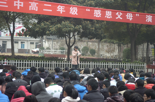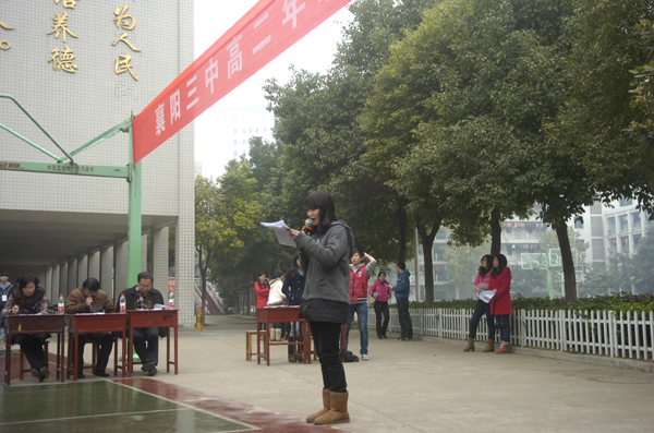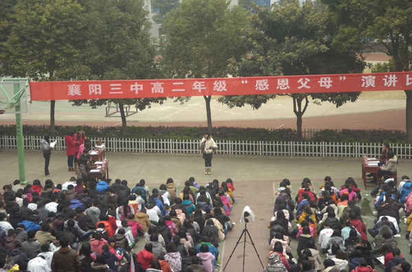 “父母之恩,水不能溺,火不能滅”。感恩節(jié)即臨,襄陽三中高二年級于11月20日下午組織學(xué)生,開展以“感恩父母”為主題的演講比賽。天氣似乎在考驗高二全體師生的意志和誠意,和著習(xí)習(xí)寒風(fēng),飄起了絲絲細雨。但全體師生仍然安守秩序,聆聽著18位選手激情澎湃的演講,會場上不時爆發(fā)出雷鳴般的掌聲。經(jīng)過激烈的比賽,17班季寧悅,1班張夢蝶,6班王春煜獲得一等獎,15班李爽健,11班木榮,16班孫援,5班王旭東,3班鄒潔,18班劉靜獲得二等獎,13班杜雙婧,2班陳高雁,14班李鴻鵠,8班陳潔,12班徐雨帆,9班趙錦琳,10班劉燚,4班操凌寒,7班劉谷雨獲得三等獎。