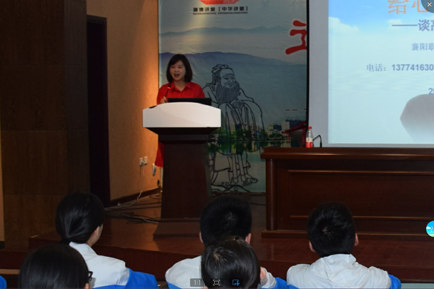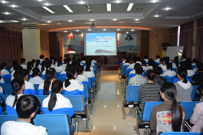 講座在我校多媒體活動室舉行,由團委副書記吉芳主持,校紀委書記陳斌、副校長曹威與會,我校高一年級部分班級的學生參加了本次活動。