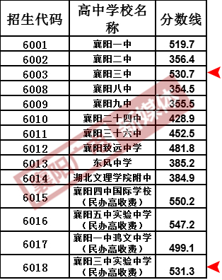 二、2017年襄陽市區(qū)除四中五中外其他普通高中統(tǒng)招錄取投檔分數線一覽表