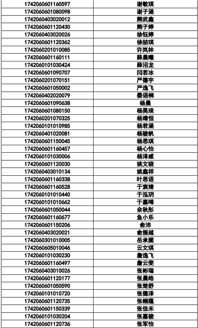 襄陽(yáng)三中2017年統(tǒng)招錄取名單