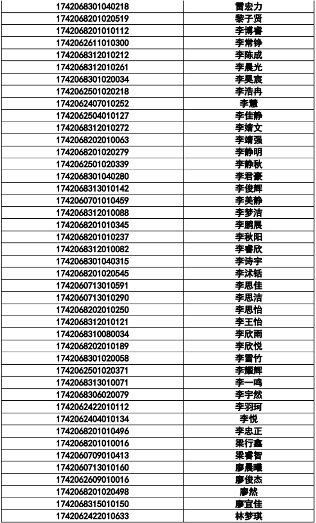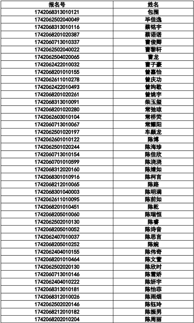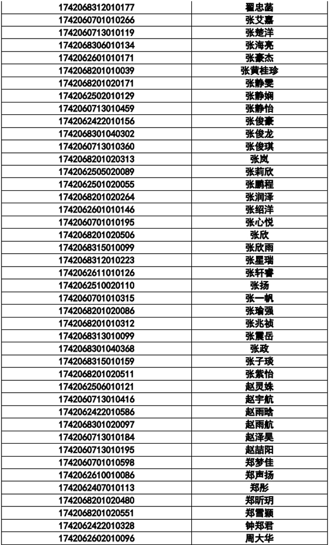 襄陽三中實驗中學2017年統(tǒng)招名單