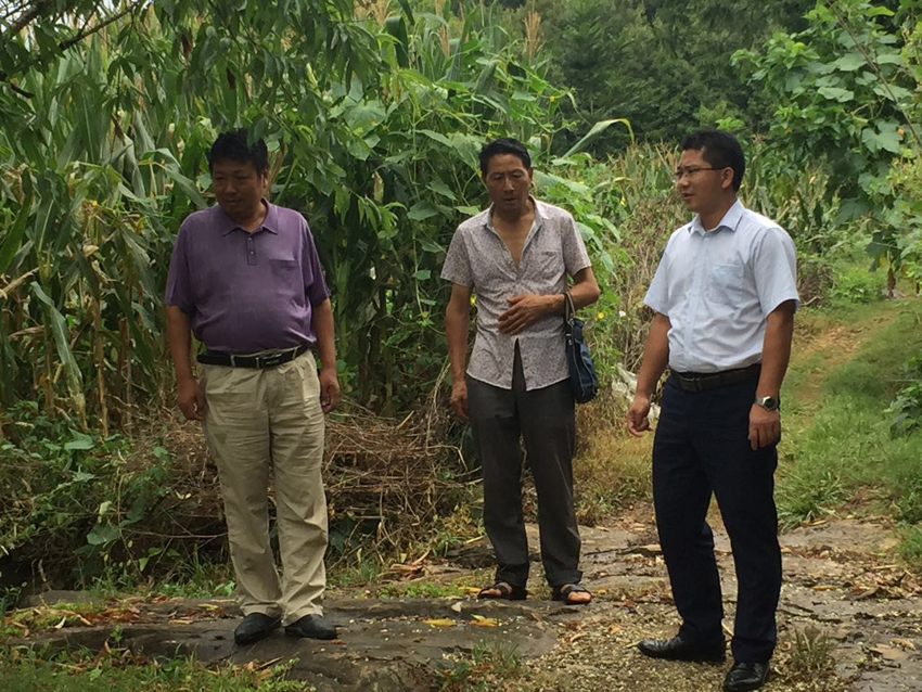 鎮(zhèn)扶貧辦領(lǐng)導(dǎo)和李校長(zhǎng)一起查看村工作,并交談