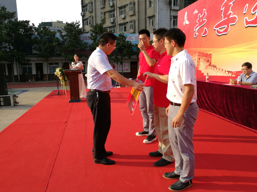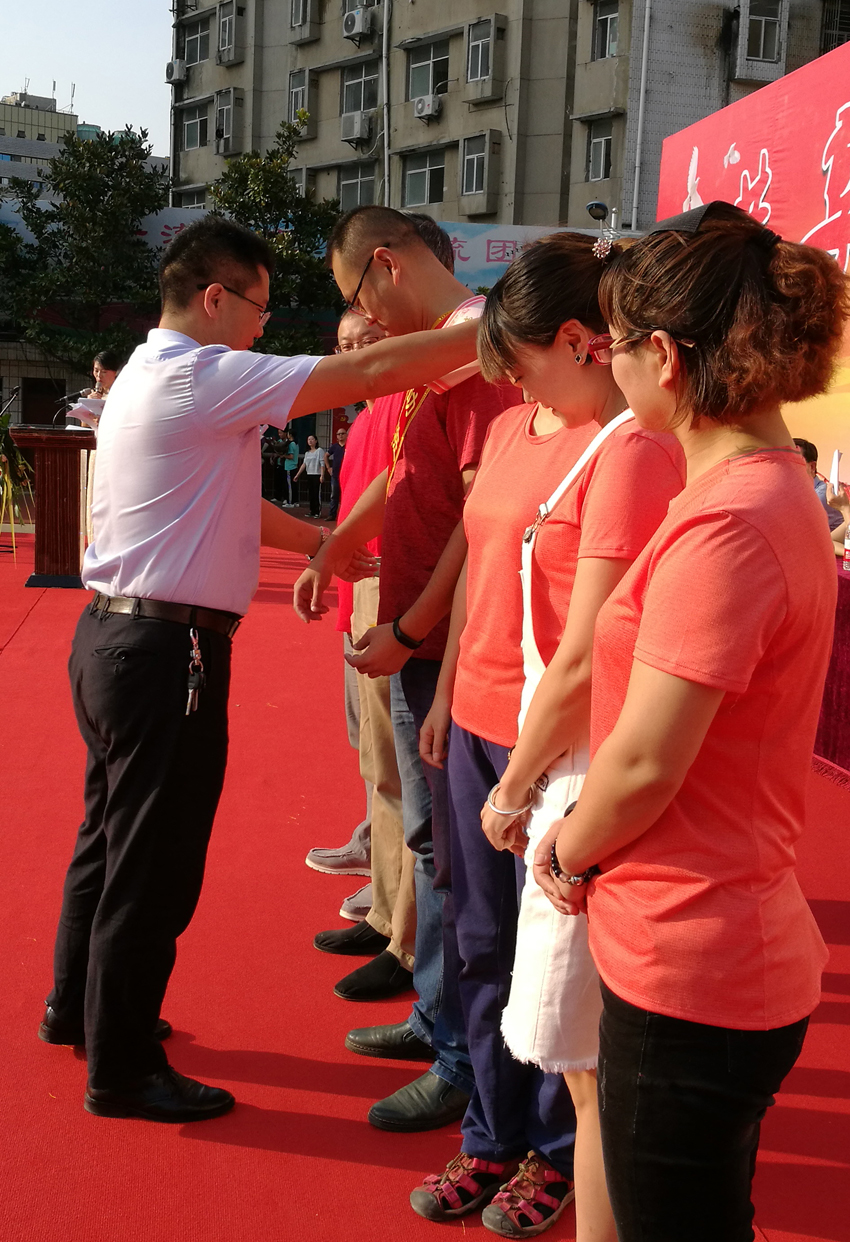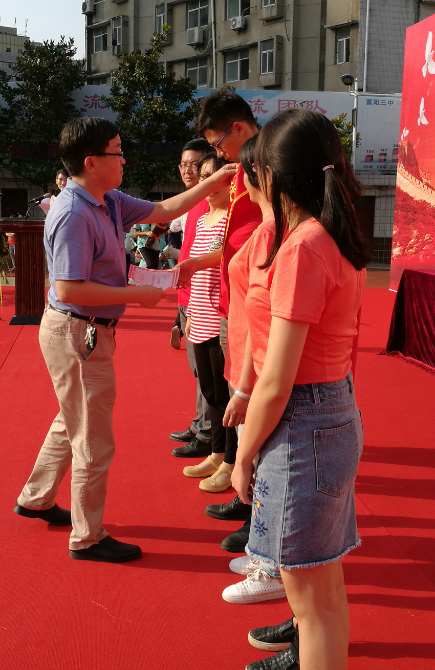學(xué)校領(lǐng)導(dǎo)給先進(jìn)團(tuán)隊(duì)和個人佩戴綬帶,頒發(fā)獲獎證書