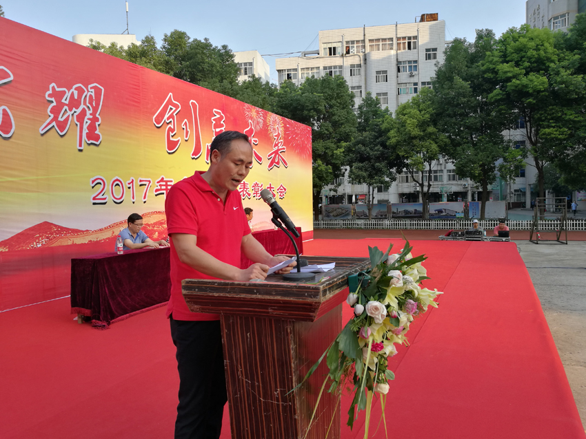 在第33個教師節(jié)來臨之際,我校召開慶祝教師節(jié)暨2016-2017學(xué)年度表彰大會,重點(diǎn)表彰了2017年高考“功臣”。2017年,我校高考成績再次實(shí)現(xiàn)歷史性的跨越,圓滿實(shí)現(xiàn)既定目標(biāo),沒有辜負(fù)上級部門和社會各界的殷切希望。輝煌的奇跡讓萬眾矚目,而奇跡的締造者們更應(yīng)被世人永遠(yuǎn)銘記。耀眼的光環(huán)背后,默默地屹立著一群堅(jiān)毅的身影,他們是高瞻遠(yuǎn)矚,運(yùn)籌帷幄的學(xué)校領(lǐng)導(dǎo)班子;他們是竭忠盡智,銳意進(jìn)取的級部戰(zhàn)斗核心;他們是同舟共濟(jì),迎難而上的班級團(tuán)隊(duì);他們是殫精竭慮,精雕細(xì)琢的科研尖兵;他們是披星戴月,愛生如子的優(yōu)秀教師。