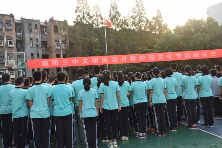 2017年9月11日上午6:30,襄陽三中高一年級(jí)的全體師生們?cè)谇f嚴(yán)的國旗下舉行了新學(xué)期開學(xué)的第一次升旗儀式。整齊有序的隊(duì)列,安靜肅穆的操場(chǎng),雄壯的國歌聲和鮮艷的五星紅旗拉開了我校秋季開學(xué)的序幕。