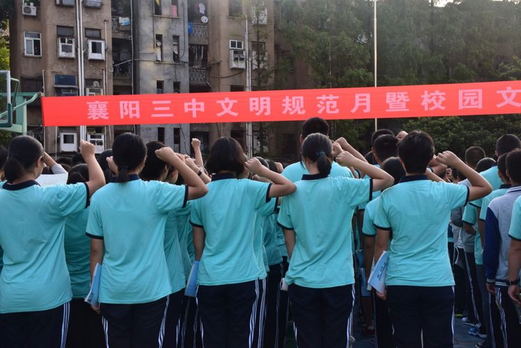 當(dāng)嘹亮的國歌聲在校園里鏗鏘回蕩,鮮艷的五星紅旗徐徐上升展開,在全體師生的注目中,迎風(fēng)飄揚(yáng)在襄陽三中的上空。