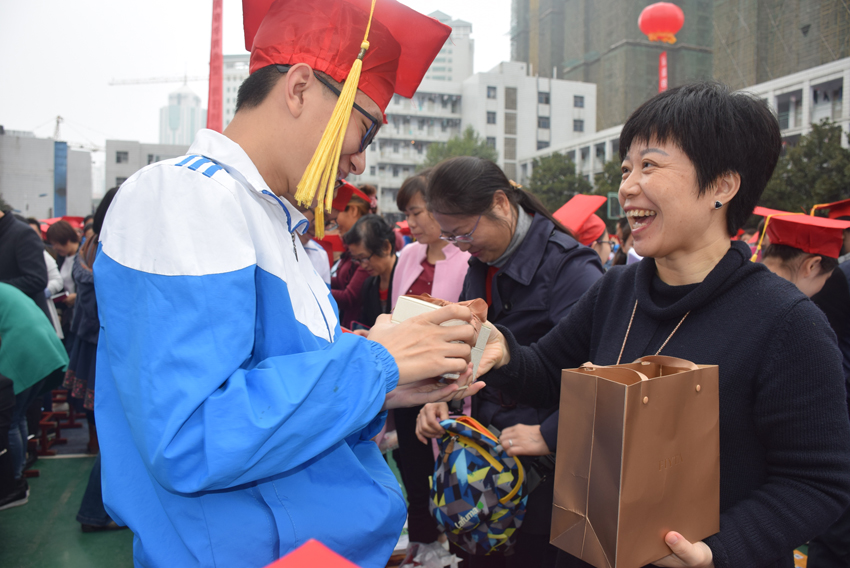 對(duì)孩子:感謝你們,也感謝我們自己,正如我們師生在高考路上常常相互感動(dòng)著一樣。無(wú)論將來(lái)你走到哪里,都要成為有責(zé)任敢于擔(dān)當(dāng)?shù)娜恕>次窇?yīng)該成為三中學(xué)生不可或缺的自身修養(yǎng)和道德境界。母校虐你千萬(wàn)遍,你待母校如初戀。讓我們一起播撒著愛,播種著微笑,讓我們?nèi)斜粣鄣臍庀h(huán)繞著。