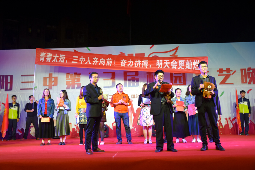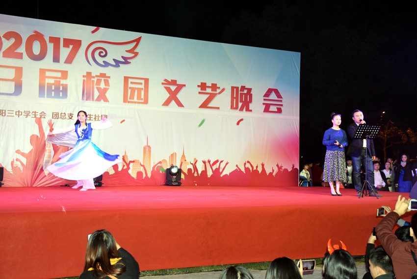 10月26日晚,體藝節(jié)的重頭戲文藝晚會上演。專業(yè)的舞臺,炫麗的燈光,震憾的音響......鋪就了三中的“星光大道”,晚會成了咱三中的“春晚”。師生同臺表演,校友傾情客串,節(jié)目豐富多采,晚會高潮迭起。這是一次才藝與智慧的展示,舞動青春,放飛夢想。這是一次歡樂與激情的碰撞,活力四射,神采飛揚(yáng)。
