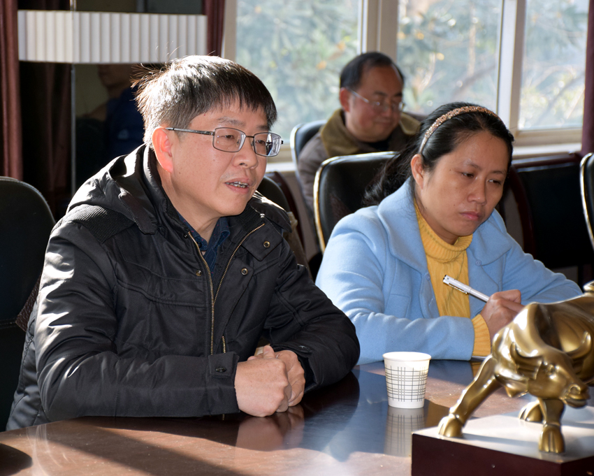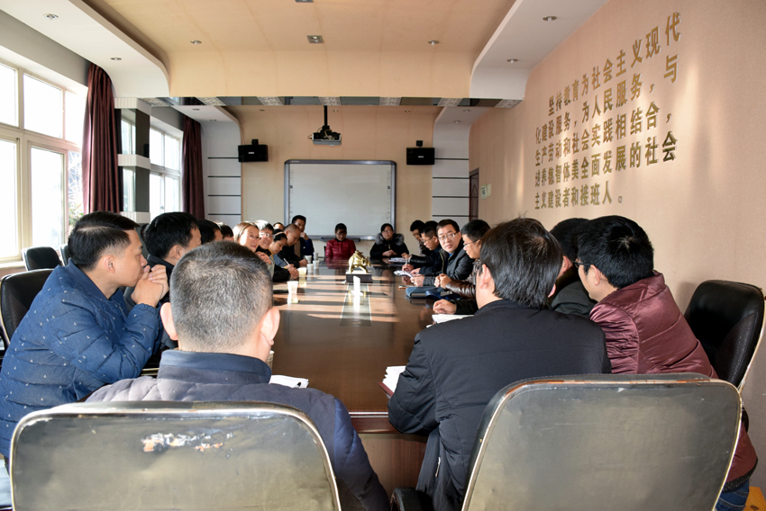 何校長向考察團(tuán)介紹三中教育教學(xué)情況