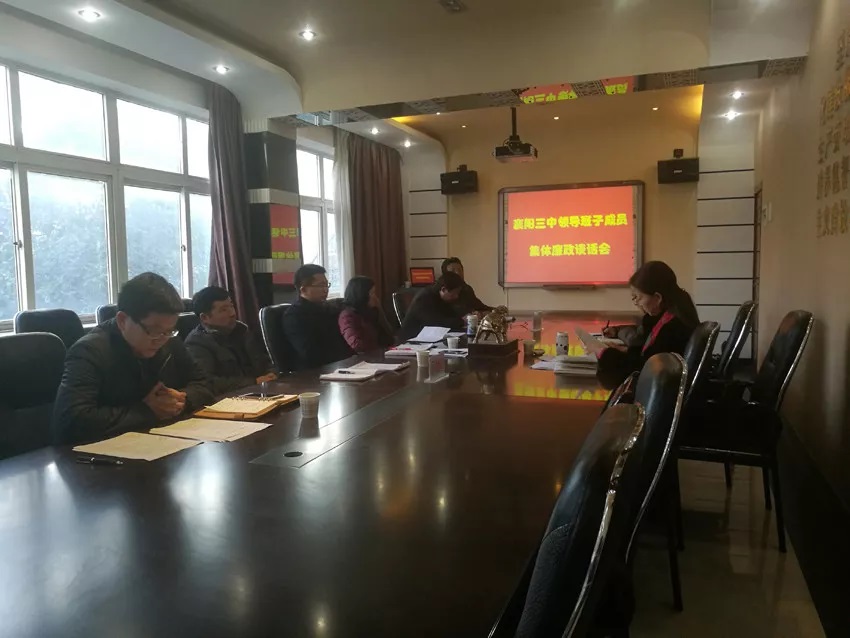 1月9日,襄陽三中召開了領導班子成員集體廉政談話會,與會的有市委教育工委委員、市教育局黨組成員、副局長肖艷芳,市教育局基礎教育科科長鄒云鄂,學校領導班子成員。