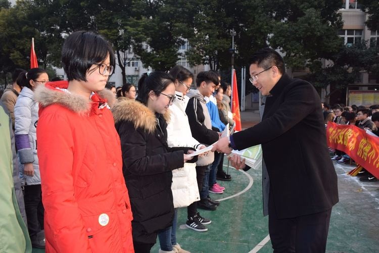 李校長(zhǎng)對(duì)元月統(tǒng)考優(yōu)勝級(jí)部——高三年級(jí)B部授予獎(jiǎng)牌