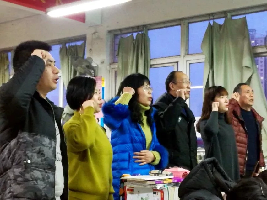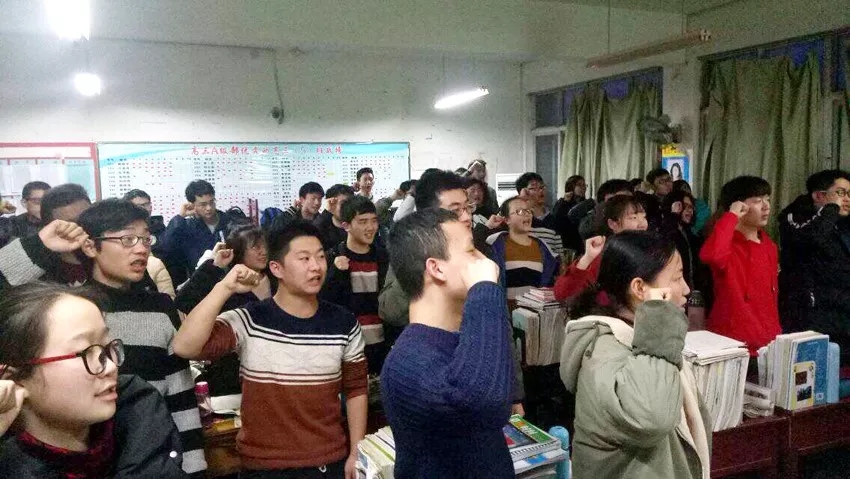 之后,學(xué)生進(jìn)行集體宣誓:做一個(gè)上進(jìn)的人,認(rèn)真的人,堅(jiān)強(qiáng)的人,執(zhí)著的人,堅(jiān)持到底,永不放棄!
