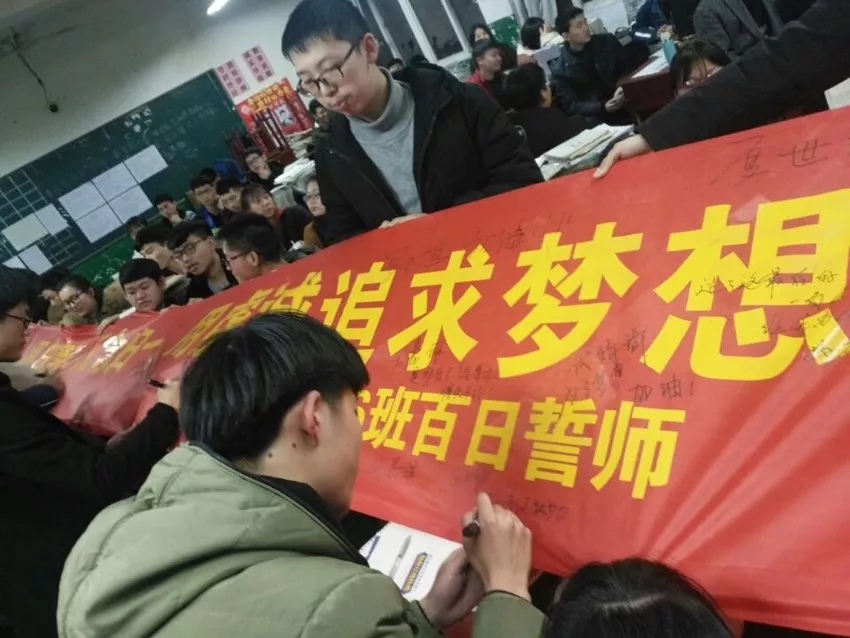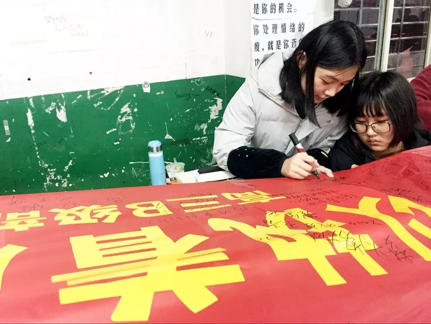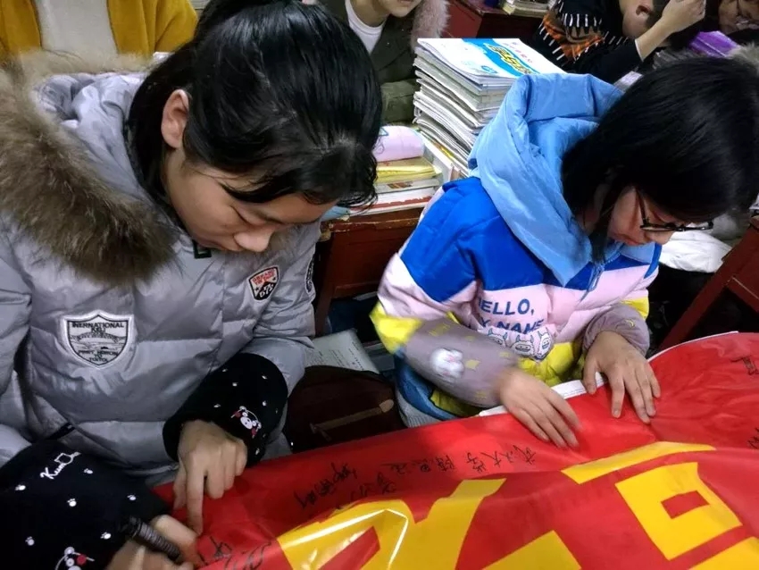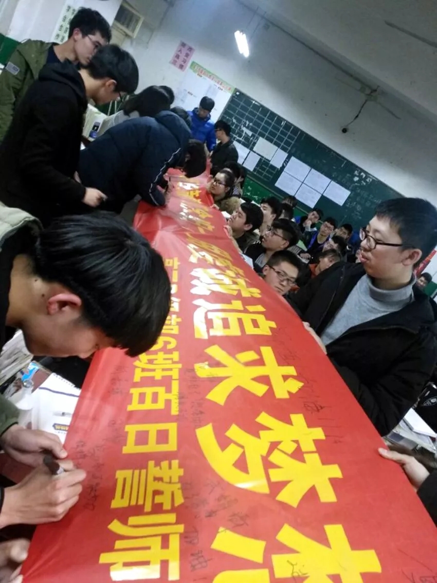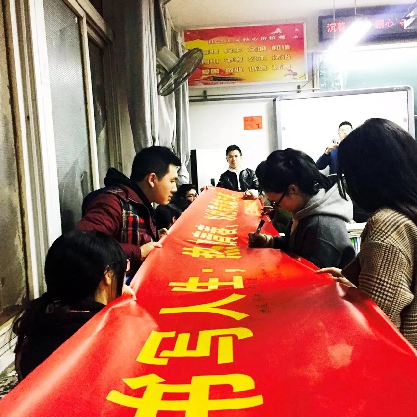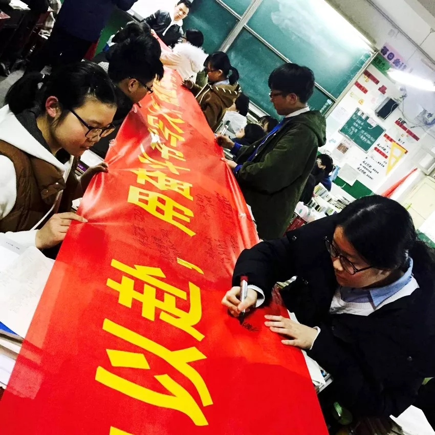 最后,各班學(xué)生在沖刺橫幅上簽字,書寫了青春的奮斗誓言。
