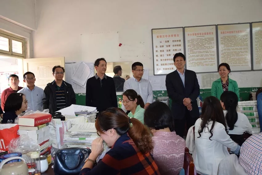教育局領(lǐng)導(dǎo)一行來到高三年級(jí)教師辦公室。程局長(zhǎng)代表局領(lǐng)導(dǎo)向奮戰(zhàn)在高考備考第一線的辛勤勞動(dòng)者——高三教師致以誠(chéng)摯的問候。程局長(zhǎng)說,三中的環(huán)境是非常艱苦的,三中老師卻有著超乎尋常的敬業(yè)精神,所以高考成績(jī)?nèi)〉昧艘粋€(gè)又一個(gè)突破。程局長(zhǎng)相信,隨著三中搬遷到新校區(qū),學(xué)校環(huán)境和條件將發(fā)生根本性好轉(zhuǎn),憑著三中教師執(zhí)著的敬業(yè)精神,三中必將創(chuàng)造新的輝煌。程局長(zhǎng)指出,“幸福都是奮斗出來的”,高三老師很辛苦,但當(dāng)我們看到許多學(xué)子圓了大學(xué)夢(mèng),實(shí)現(xiàn)了許多家庭的期盼,為民族復(fù)興培養(yǎng)了人才,就實(shí)現(xiàn)了老師的人生價(jià)值,我們就會(huì)感到由衷的幸福。程局長(zhǎng)殷切希望老師們擼起袖子加油干,認(rèn)真?zhèn)淇?,科學(xué)備考,奮戰(zhàn)到高考最后一刻,實(shí)現(xiàn)完美收官。