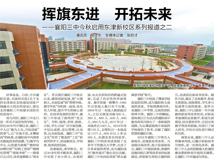 好事連連。日前,中共襄陽市委、市政府印發(fā)《 關于支持東津新區(qū)加快建設國家產城融合示范區(qū)的意見》,提出支持襄陽三中創(chuàng)建全國知名優(yōu)質高中。