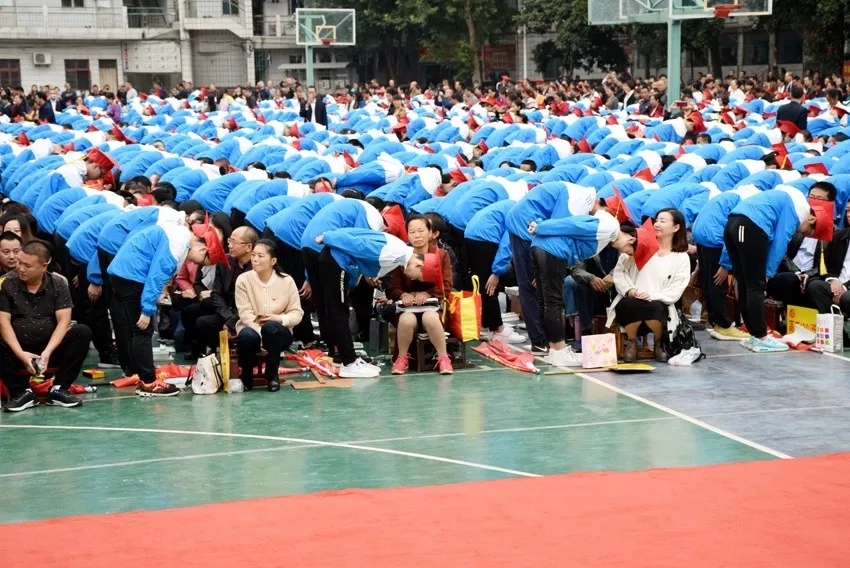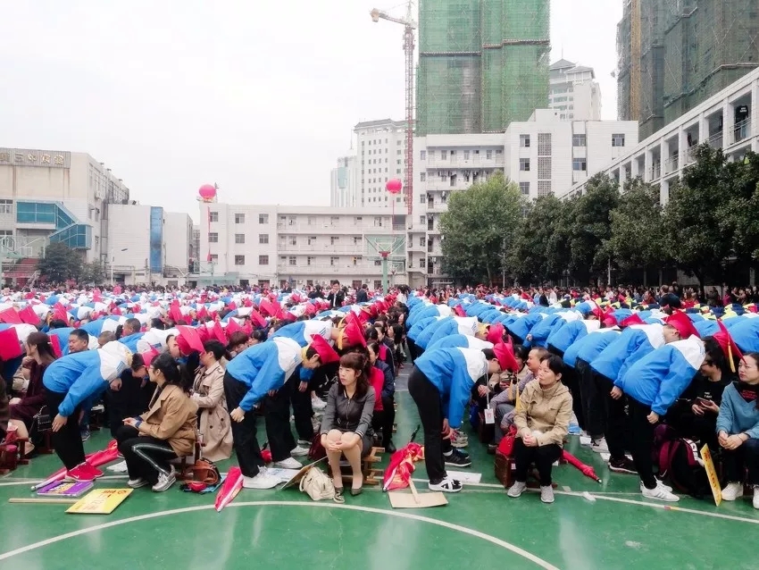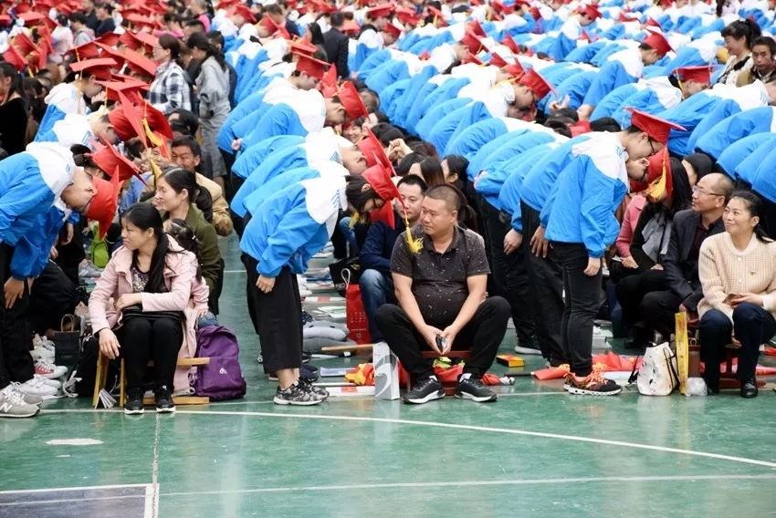 學(xué)子滿懷深情地向家長鞠躬
