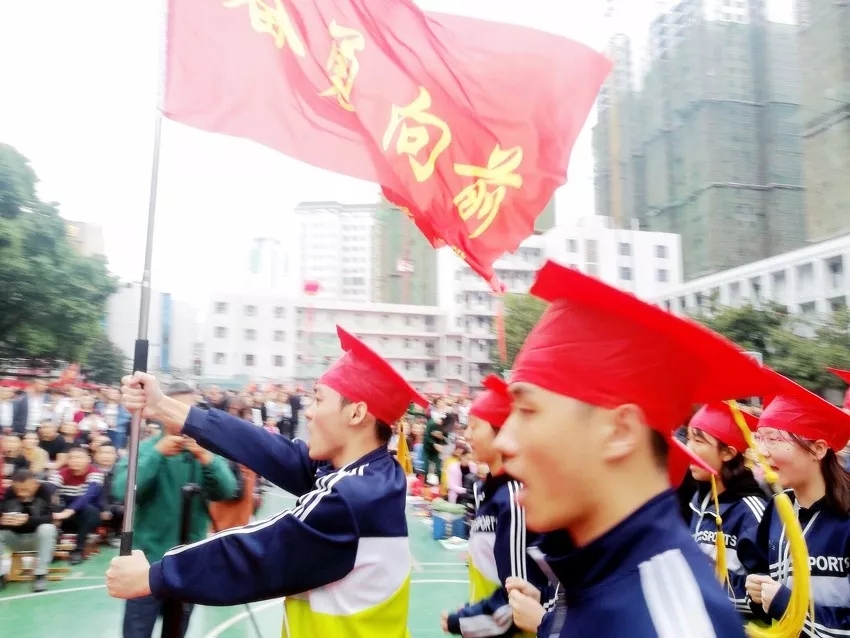 學(xué)子們對著國旗立下了