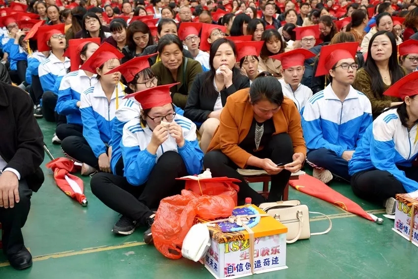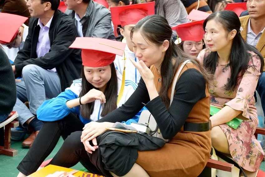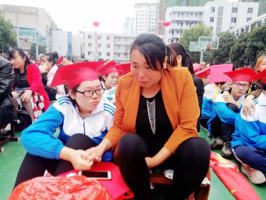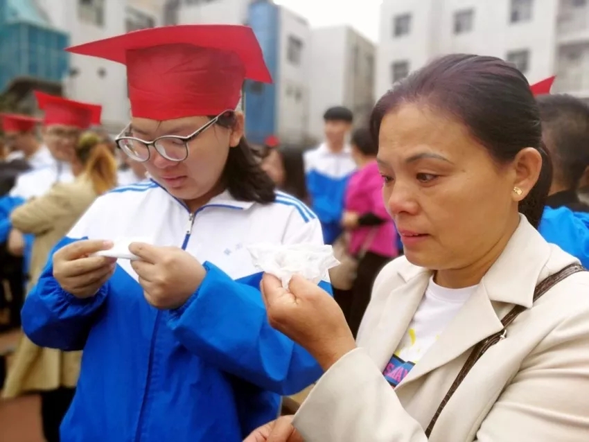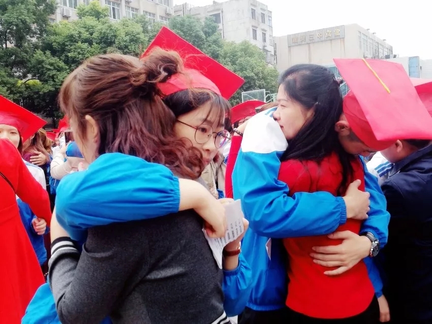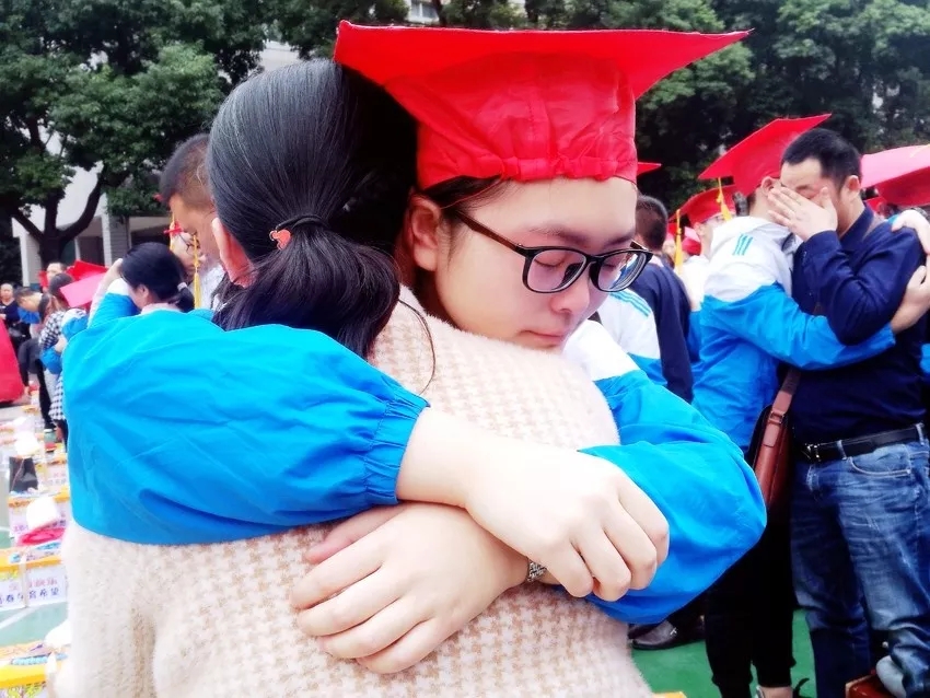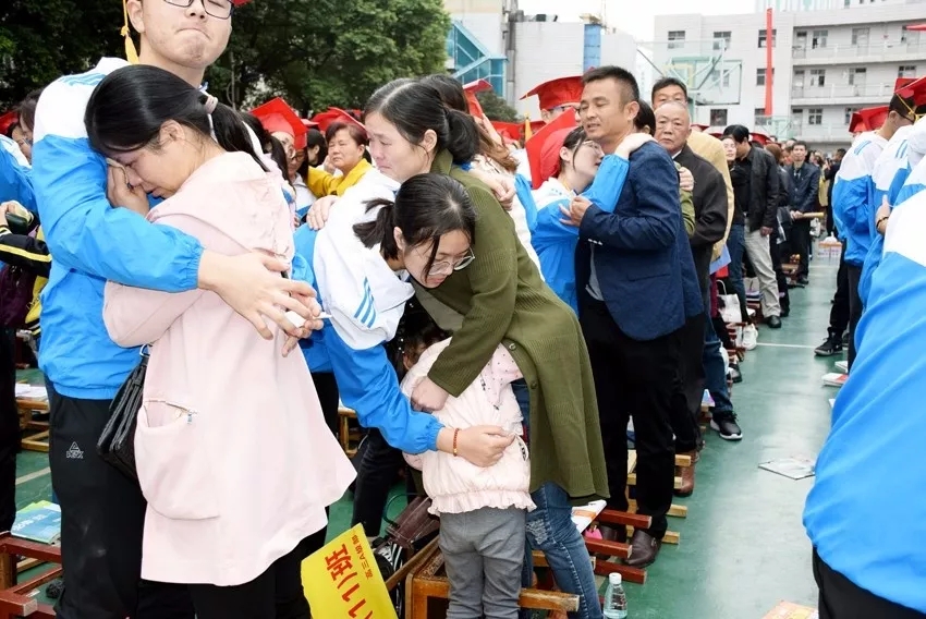 學(xué)生和父母相擁而泣
