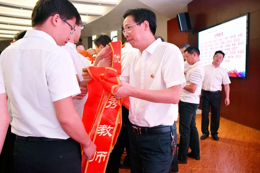 ▲黨委副書(shū)記、紀(jì)委書(shū)記陳斌給優(yōu)秀教師頒獎(jiǎng)