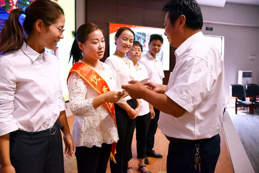 ▲黨委書(shū)記、校長(zhǎng)李天艷給優(yōu)秀教師頒獎(jiǎng)