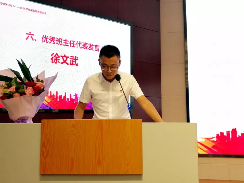 徐文武老師作為功勛班主任代表,作了題為《著力打造班級(jí)競(jìng)爭(zhēng)的軟實(shí)力》的發(fā)言,交流自己班級(jí)管理的經(jīng)驗(yàn),介紹具體做法,從中可見(jiàn)他管班煞費(fèi)苦心,把細(xì)節(jié)做到極致,高考中班級(jí)取得優(yōu)異成績(jī)。