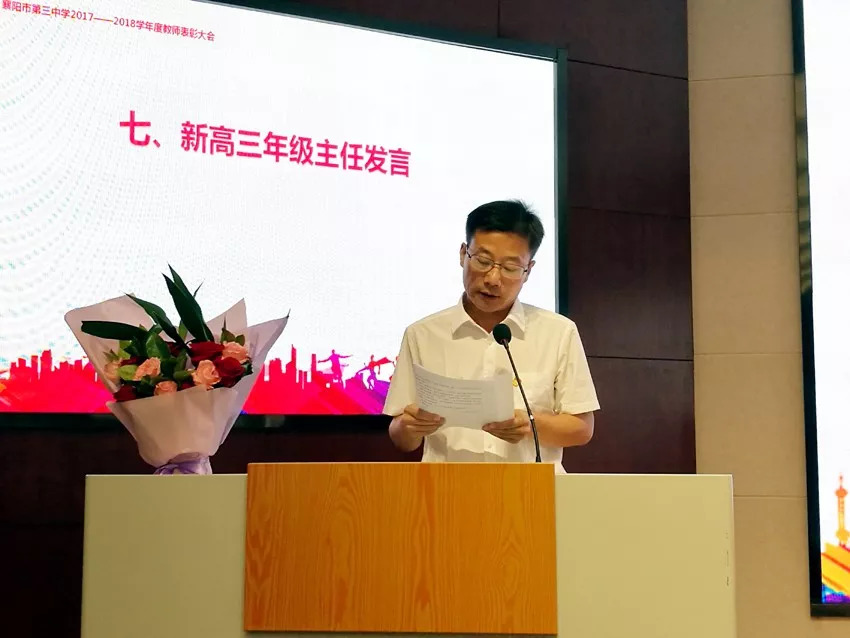 2019屆高三兩個(gè)級(jí)部主任楊勝安、張勇分別作了表態(tài)發(fā)言,提出2019年高考的目標(biāo)和實(shí)現(xiàn)措施。