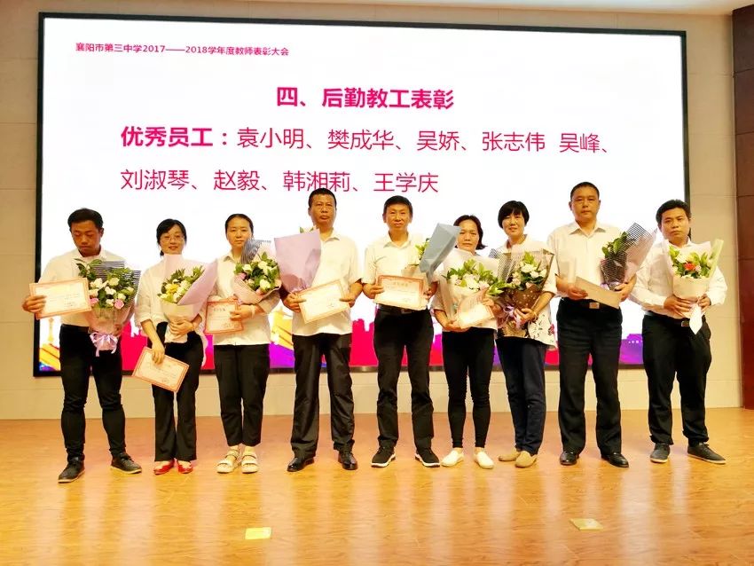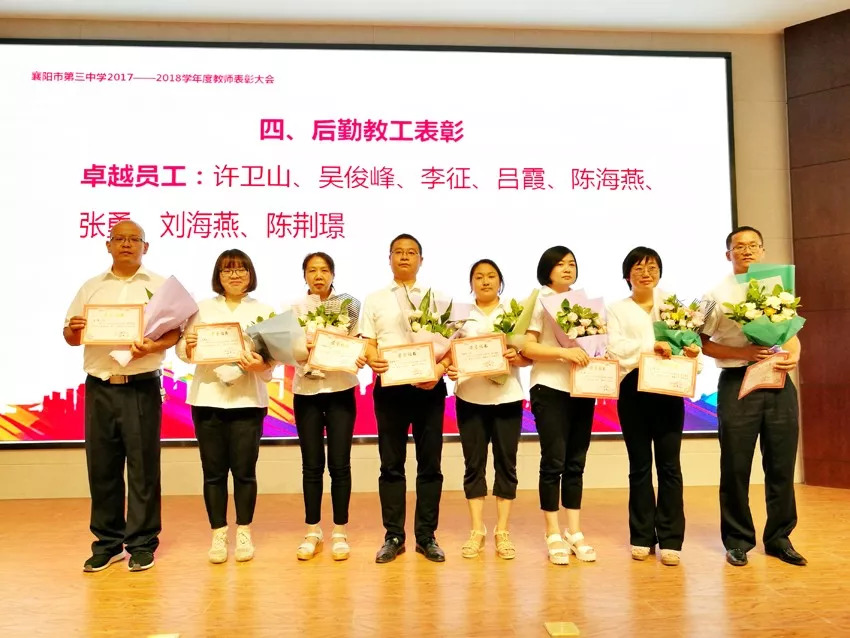 一線教師敬業(yè)愛(ài)崗、奮勇拼搏,后勤人員默默奉獻(xiàn)、提供保障。在襄陽(yáng)三中的功勞簿上,有一線教師的一半,也有后勤人員的一半!表彰會(huì)上共有139名一線老師獲獎(jiǎng),18名后勤人員獲獎(jiǎng)。