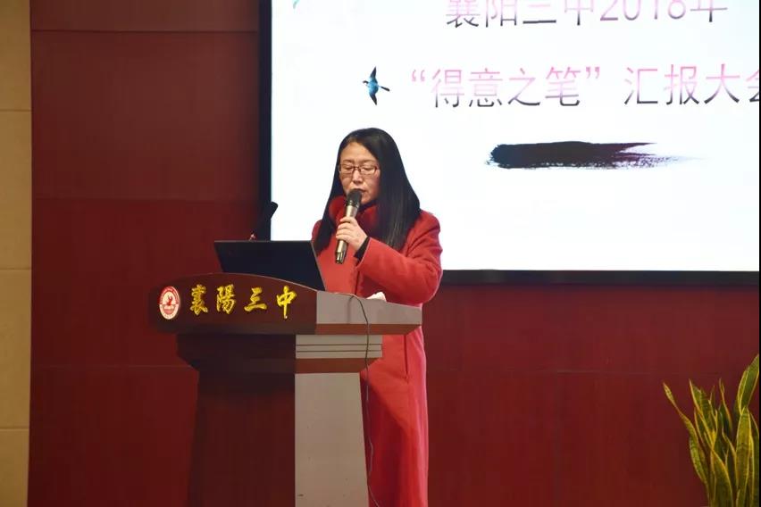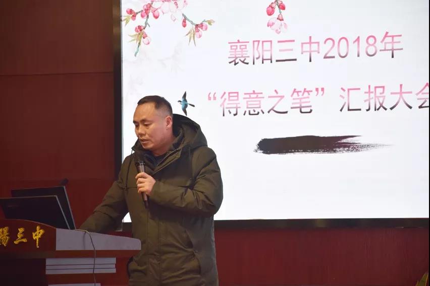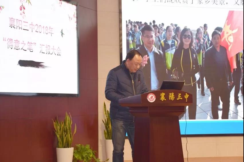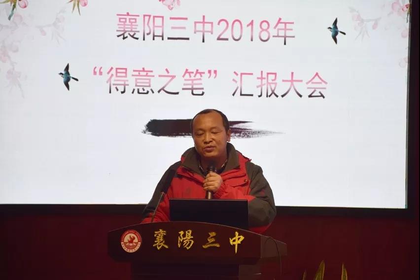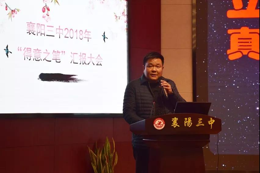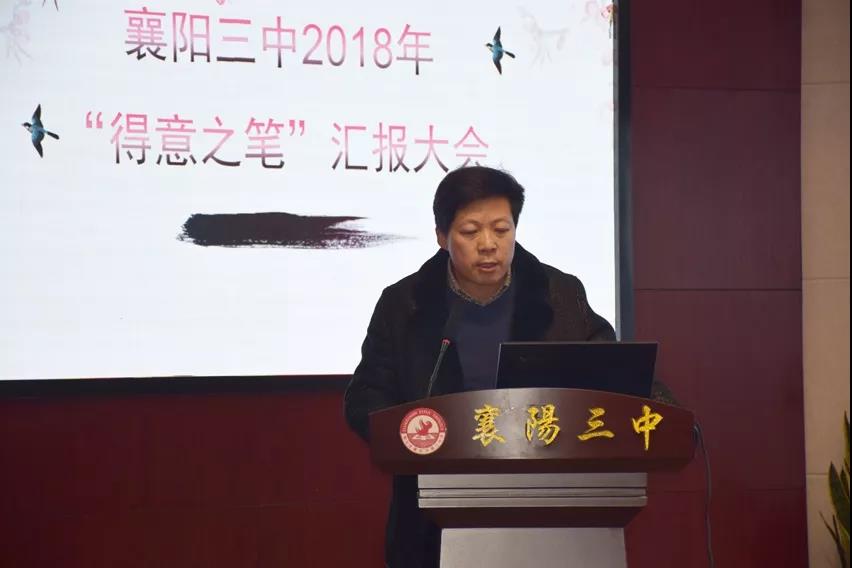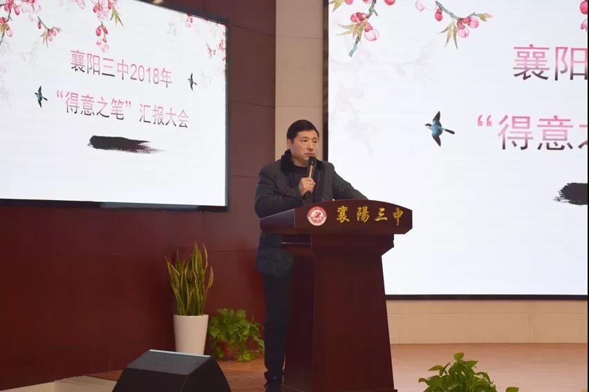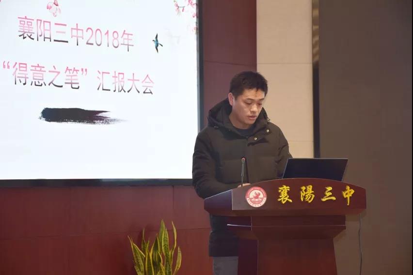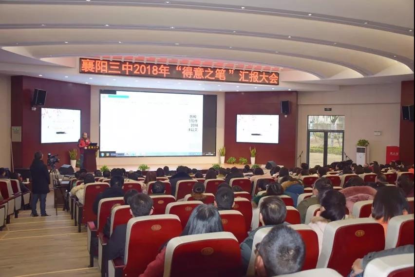 1月18日下午,襄陽三中在新校區(qū)聞道廳召開2018年"得意之筆"匯報(bào)會,與會的有學(xué)校領(lǐng)導(dǎo)班子和全體教師,會議由紀(jì)委書記陳斌主持。
