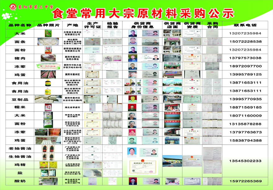 襄陽三中食堂大宗原材料采購公示