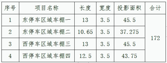 1、采購(gòu)內(nèi)容:對(duì)校園內(nèi)東西兩個(gè)區(qū)域建設(shè)四個(gè)電動(dòng)自行車充電所用的停車棚,并負(fù)責(zé)安裝到位。
